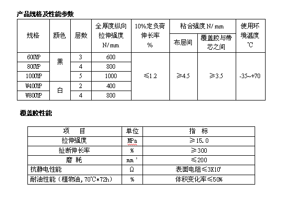 增強(qiáng)型橡膠提升帶技術(shù)指標(biāo):